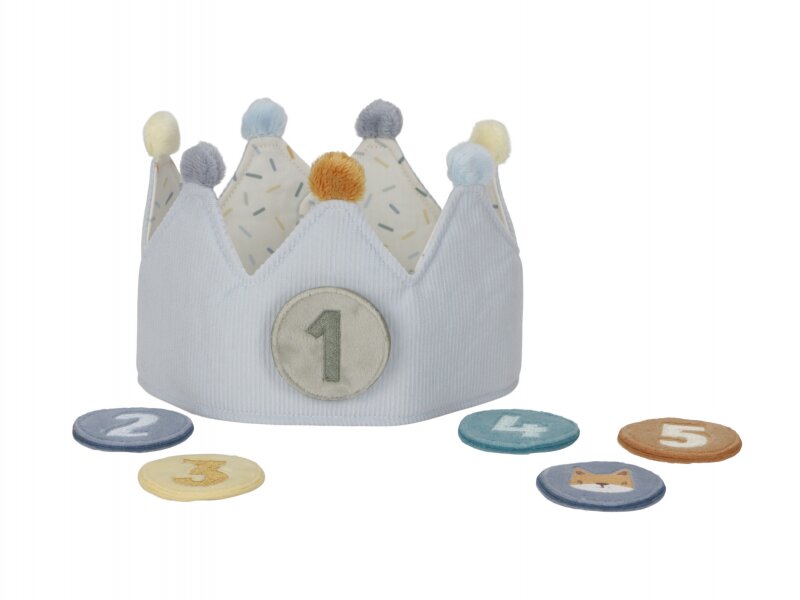 Tato krásná textilní korunka je navržena tak, aby byla praktická i zábavná zároveň. Díky výměnným číslicím od 1 do 5 ji lze snadno přizpůsobit věku dítěte - ideální na oslavy prvních až pátých narozenin. Neutrální kolečko s roztomilým obrázkem zvířátka můžete kdykoli vyměnit nebo použít při hrách na princeznu nebo krále, což je skvělý způsob, jak podpořit dětskou představivost a radost z hraní.