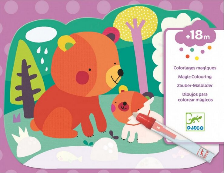 DJECO Vodní omalovánky - Život v lese přináší dětem radost z objevování a tvoření bez potřeby barev nebo fixů. Stačí naplnit magickou tužku vodou a sledovat, jak se na obrázcích objevují pestrobarevné postavičky zvířátek z lesa - medvídek, kočička, sovička či liška.