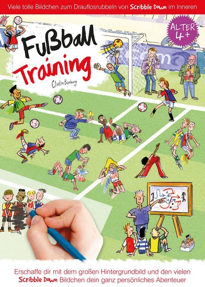 Pomocí propisovacích obrázků dotvořte prostředí fotbalového hřiště vtipnými situacemi z tréninku.