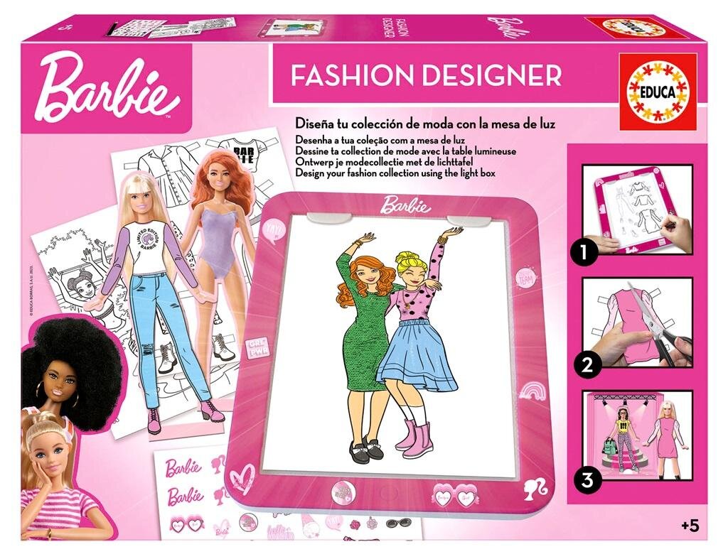 Twoja lalka, twój styl! Zostań projektantem i stylistą dzięki temu kreatywnemu zestawowi. Wybierz jeden z trzech wariantów zabawy: 1. Zaprojektuj własne ubrania i zorganizuj Barbie pokaz mody na wybiegu (dołączony do zestawu). 2. Pokoloruj Barbie i ubierz ją w ubrania własnego projektu. 3. Pokoloruj obrazki z Barbie. Uwaga: produkt wymaga 3 baterii AAA LR03 1.5V (brak w zestawie). Ponad 60 wzorów i 25 obrazków zapewni zabawę w malowanie na długie godziny! ZAWARTOŚĆ: 4 figurki Barbie 1 podświetlany panel 4 podstawki do figurek 1 ołówek 1 arkusz z naklejkami książeczka z obrazkami wybieg instrukcja
