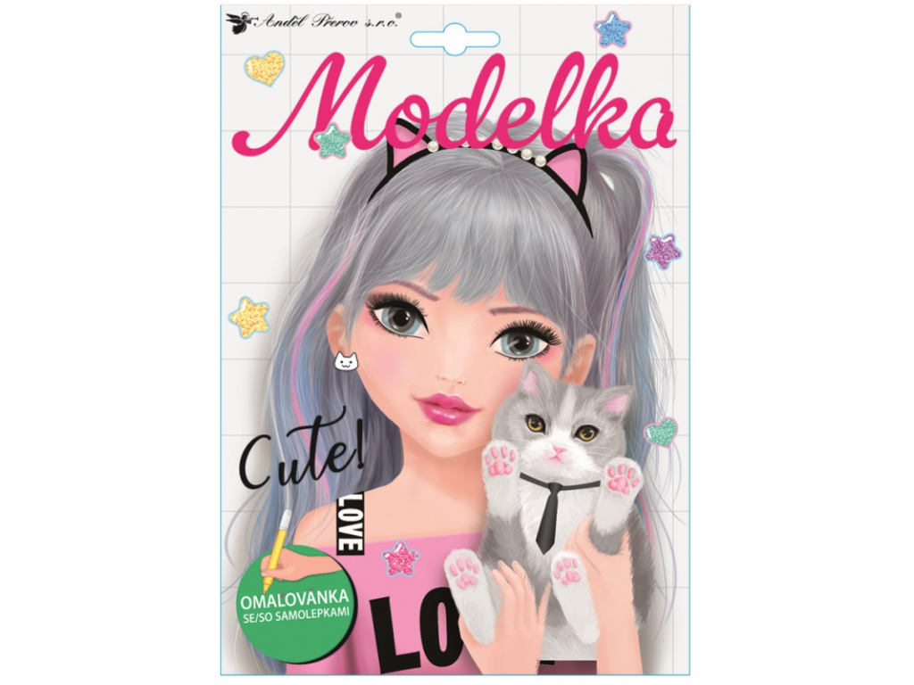Omalovánka se samolepkami 25 x 18 cm modelka s kočkou