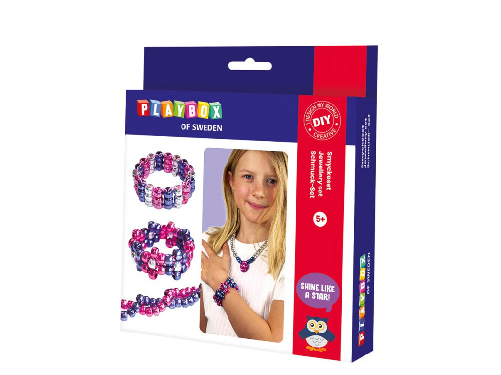 Sada šperků , která obsahuje vše potřebné k vytvoření vlastních třpytivých náramků a náhrdelníků.