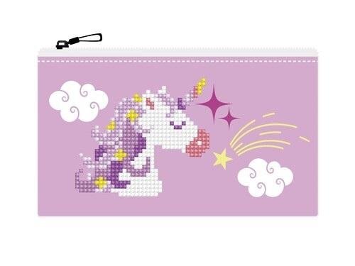 Zestaw do stworzenia spersonalizowanego piórnika z obrazkiem z haftu diamentowego. Układaj kolorowe diamenciki według oznaczeń i spakuj do piórnika swoje ulubione przybory szkolne! Zestaw zawiera 1 piórnik o wymiarach 21.5x14 do wyklejania diamencikami, diamenciki, tackę, wosk oraz specjalny rysik.
