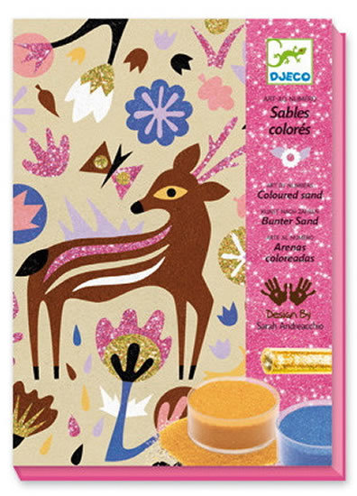 Tato sada je určena pro malé i větší tvůrce od 6 let. Obsahuje čtyři tematické obrázky se zvířátky z lesa a podrobný ilustrovaný návod, díky kterému děti jednoduše odlepí očíslované plochy a posypou je buď barevným pískem, nebo třpytivými flitry. Výsledné obrázky jsou nejen krásné, ale i plasticky působící, což dává tvoření nový rozměr. Kombinace dvou materiálů zaručuje originální a efektní výsledek, který potěší každého malého umělce.