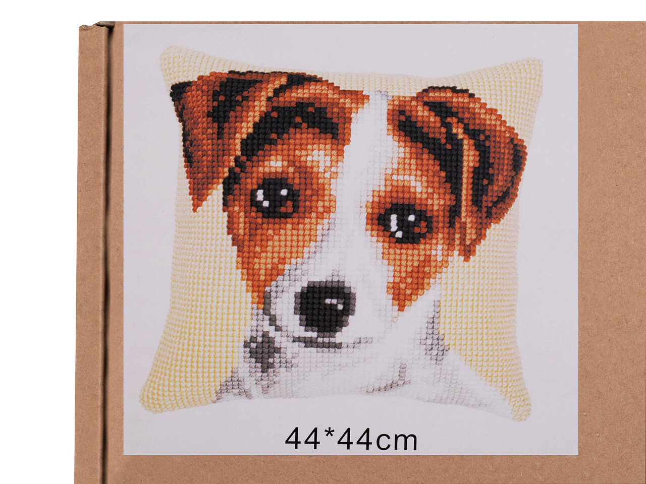- Předtištěný povlak na polštář (přední strana) z kanavy s motivem pejska.