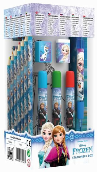 Obsahuje 8 obrázků k vybarvení, blok, 7 barevných pastelek, 3 fixy, tužku, gumu, ořezávátko, propisku a plechový penál v oblíbených pohádkových motivech.