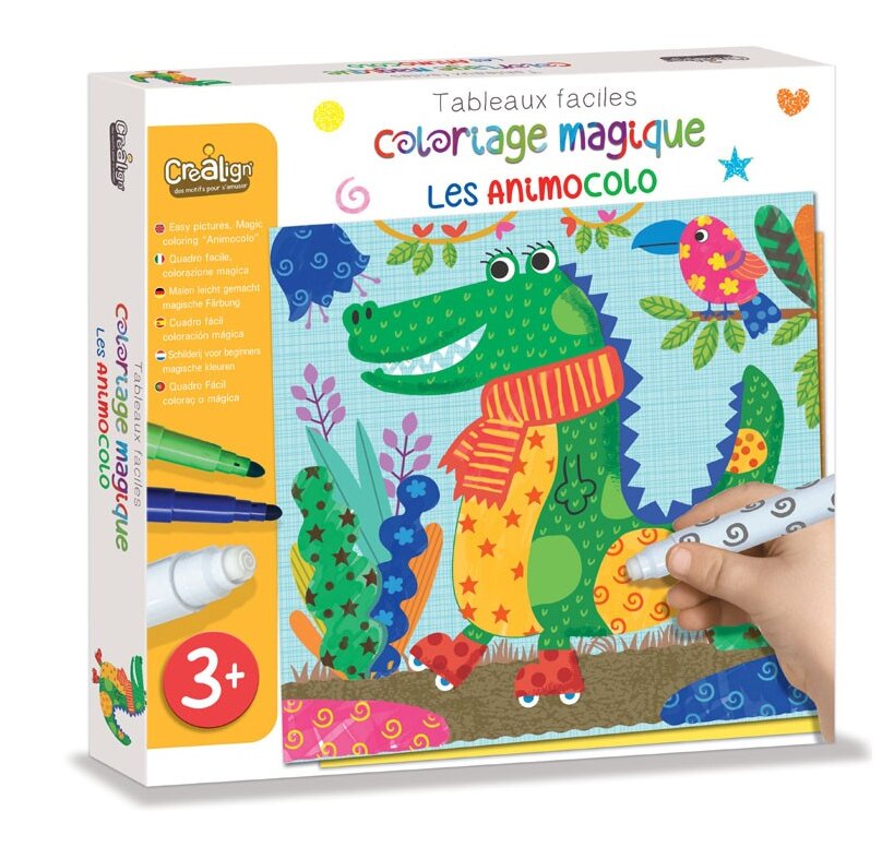 Kreatívna sada pre deti Tvorenie Magickými fixkami Zvieratká od francúzskej značky Crea Lign z radu Jednoduché obrázky je vhodná už pre deti od 3 rokov. Obsahuje 6 obrázkov zvieratiek na vymaľovanie, 6 fixiek a 3 blendery so vzormi a kúzelným atramentom. Nechýba ani jeden stojan na vystavenie obrázkov.