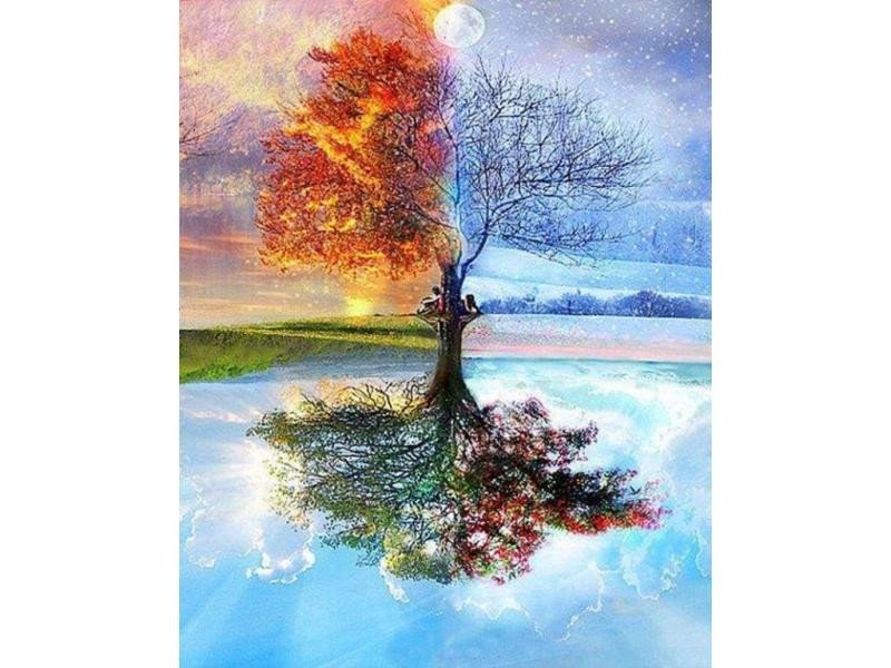 Diamantové malování - Strom čtyři roční období 40 x 50 cm (s rámem)