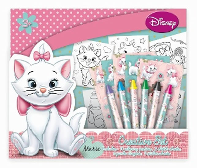 Kreativní set obsahuje 10 obrázků k vymalování, 2 volné listy k malování, 5 archů se samolepkami v oblíbených licencích a 6 barevných voskovek.
