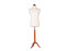 Pevný základ je potažen kvalitním textilním potahem, který jemně chrání vaše látky při práci. Výšku busty lze snadno nastavit pomocí integrovaného šroubu, takže si ji můžete přizpůsobit podle konkrétních potřeb. Navíc jsou dřevěný stojan a busta plně oddělitelné, což zvyšuje variabilitu použití a usnadňuje skladování či přepravu.