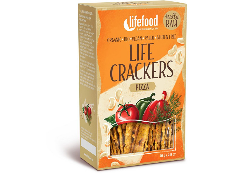 Tenké krekry fantastické chuti kterých nebudete mít nikdy dost. Delikátní kombinace oříšků, semínek, zeleniny a bylinek. Krekry jsou vyrobeny z prvotřídních surovin v BIO kvalitě a jsou šetrně sušeny tak, aby byly zachovány všechny zdraví prospěšné látky. Jedná se o přirozeně bezlepkovou skvělou pochoutku, která má zároveň velký přínos pro Vaše zdraví. Mini Pizzaioli: Bezlepková pochoutka. Bez chemie, lepku, cholesterolu. Z kvalitních BIO surovin. Ruční výroba. Složení: raw kešu ořechy (45%), lněné semínko zlaté, mrkev, sušená rajčata (s mořskou solí), cibule, sušený kopr, paprika mletá, nerafinovaná mořská sůl, citronová šťáva. * = produkt ekologického zemědělství Obsah: 70gVýživové údaje na 100 gEnergetická hodnota 2108 kJ / 506 kcalTuky 37 g z toho nasCené mastné kyseliny 6 gSacharidy 23 g z toho cukry 7 gBílkoviny 16 g Sůl 1 g