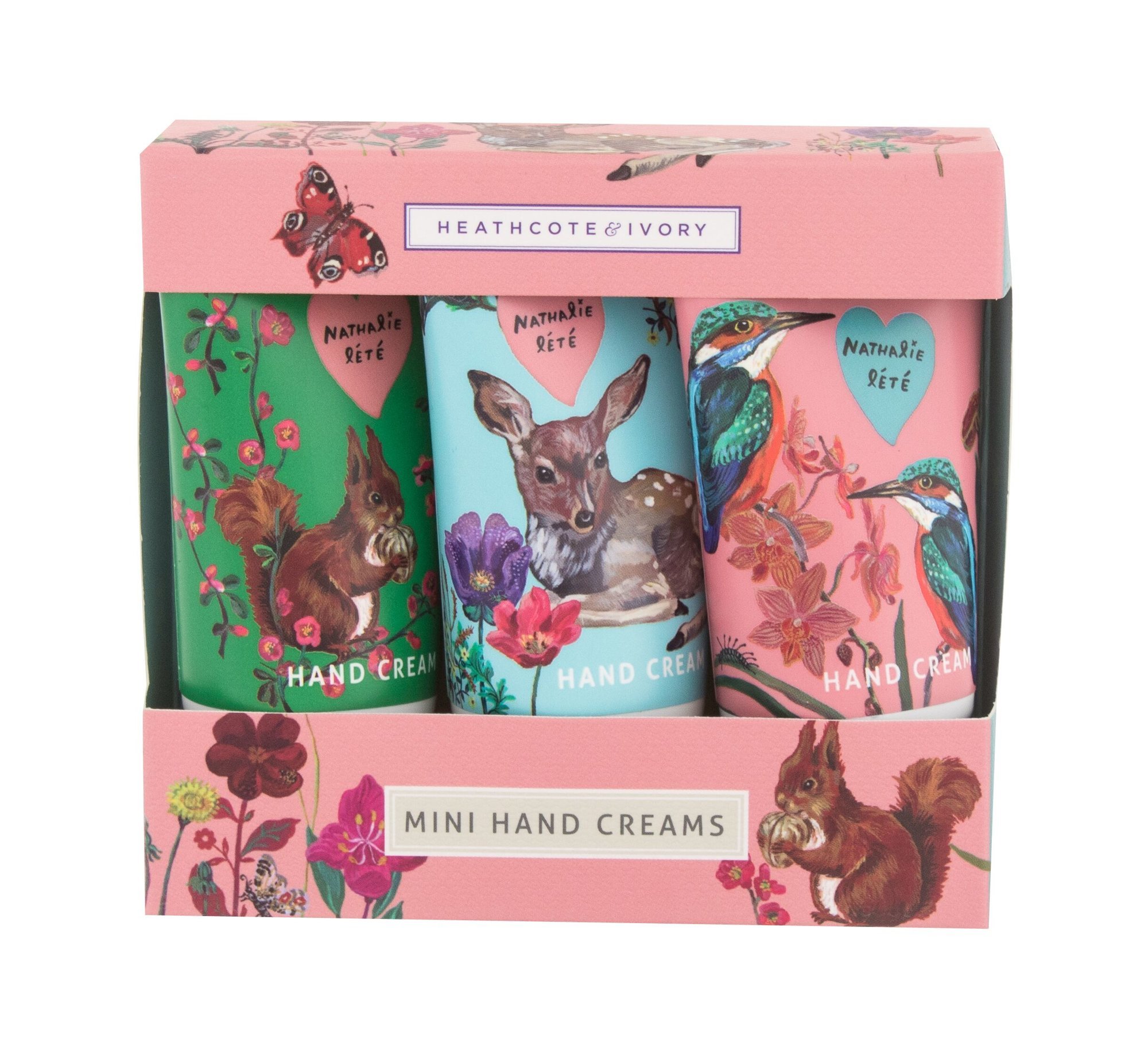 Minikrémy v setu Vintage & Co Forest Folk britské značky Heathcote & Ivory jsou díky své velikosti perfektní do kabelky, takže můžete ošetřit své ruce kdykoliv během dne. Vhodné i na dovolenou, abyste nemusely svá zavazadla zbytečně zatěžovat velkým balením nebo třeba jako milý dárek.