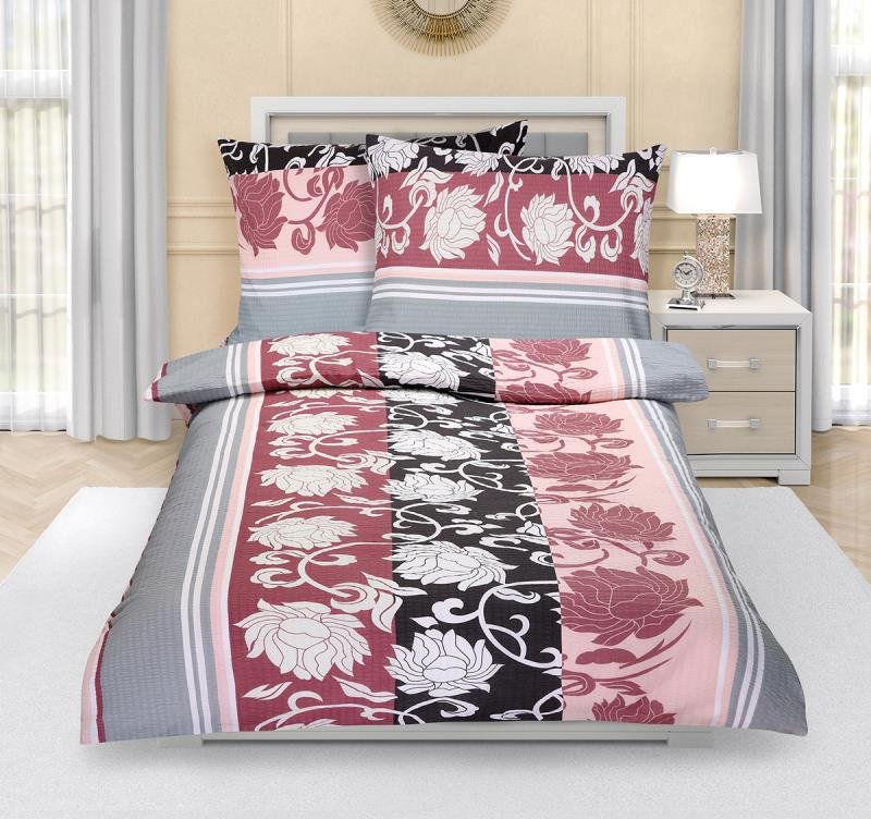 Povlečení krepové - šedorůžová pivoňka - 140x220, 70x90 cm