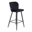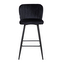 Hoker HANA pozwoli Ci wygodnie usiąść przy kuchennej wyspie. Jego siedzisko oraz oparcie zostały obite miękkim w dotyku, eleganckim welurem w czarnym kolorze. Wygodne oparcie posiada przebiegające w pionie przeszycia, które tworzą wzór dodający meblowi oryginalności.