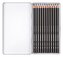 Kvalitní akvarelová pastelky v klasickém šestihranném tvaru v kovové krabičce s měkkým, intenzivním grafitovým jádrem.
