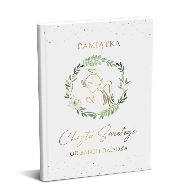 Książeczka z okazji Chrztu Świętego w formacie A5 wraz z kopertą w środku. Wyjątkowa książeczka upamiętniająca jeden z najważniejszych dni w życiu dziecka - CHrzest Święty. Elegancka i starannie wykonana pamiątka w formacie A5, ozdobiona złotymi detalami i delikatnymi ilustracjami nawiązującymi do sakramentu Eucharystii. Format: A5 (poręczny i elegancki), Kolorowe ilustracje w środku, które nadają całości wyjątkowego charakteru, Miejsce na osobiste wpisy - idealna do zachowania wspomnień z uroczystości, Koperta wewnątrz.