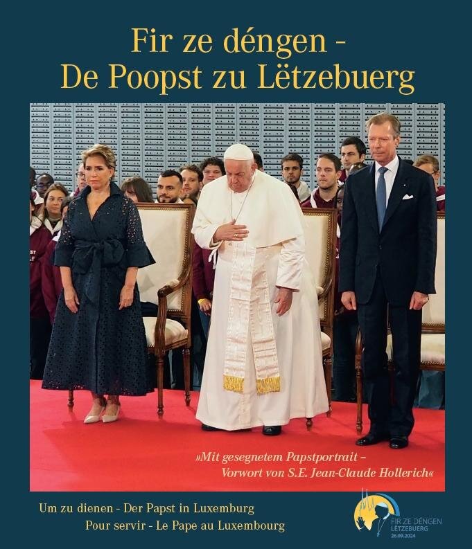 « Fir ze déngen - Um zu dienen - Pour servir », tel était la devise du Voyage apostolique du pape François, décédé le 21 avril 2025, au Grand-Duché de Luxembourg dans ses trois langues nationales : le luxembourgeois, l'allemand et le français.La documentation bilingue (allemand - français) que...