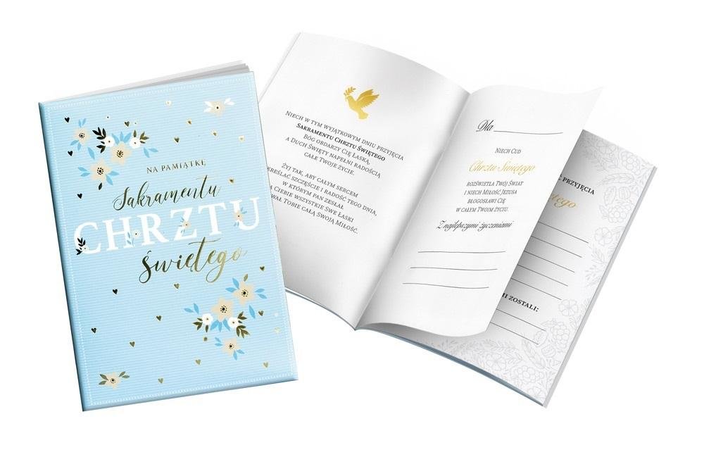 Książeczki PMB to produkt wyjątkowy - pięknie wydany, elegancki, a jednocześnie atrakcyjny cenowo. Każda książeczka ma twardą okładkę, kolorowe wnętrze z pięknymi grafikami i cytatami oraz życzenia i miejsce na osobistą dedykację. Na wewnętrznej stronie zdobionej złotą lub srebrną folią okładki wklejona jest specjalna, nieduża koperta, w której można przekazać kartę podarunkową lub banknot. Książeczka PMB Kukartka to idealny prezent na wyjątkową okazję, jaką niewątpliwie jest Chrzest Święty.