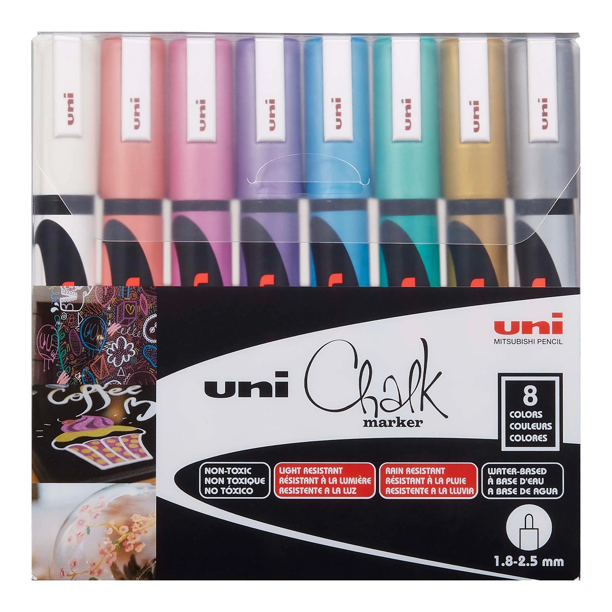 UNI PWE-5M sada 8 ks křídových popisovačů, 1,8 - 2,5 mm, metalické barvy