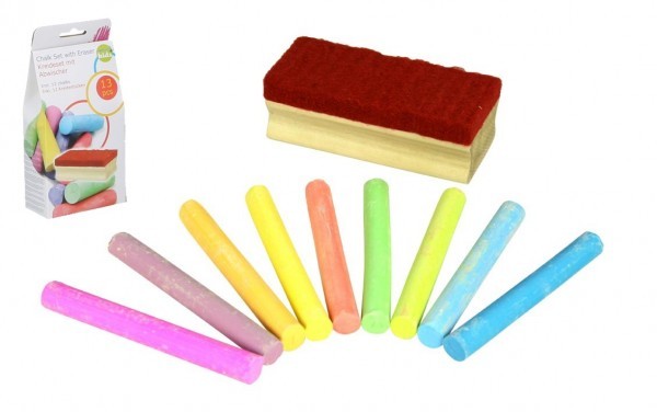 Křídy barevné na tabuli 12 ks + houbička v krabičce 9x19x5cm
