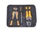 Sada lisovacích kleští s pěti vyměnitelnými matricemi a automatické odizolovací kleště.Kleště na elektrotechnické práce.