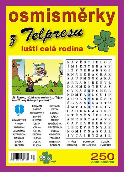 Kupte si tyhle osmismerky z tepresu a mame o zabavu postarano. Ja je naprosto zboznuji. Strasne me bavi. Jsou levne, obsahuji toho mnoho na lusteni. Prijemne se clovek odreaguje a pobavi vtipem ,ktery vyjde v tajence. Kupiji si je pravidelne ale ne jen ja. Lusti je u nas skoro cela rodina od...