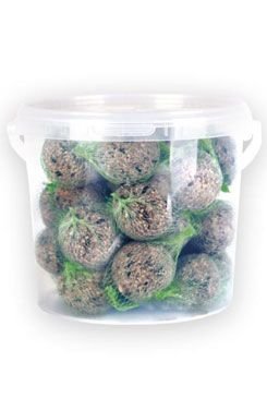 Lojové koule v plastovém kbelíku o objemu 5 litrů jsou skvělým zdrojem energie a živin pro zahradní ptáky během chladných měsíců i celoročně. Složení bohaté na slunečnici, arašídy a zvířecí tuk zajistí, že ptáci získají vše potřebné k přežití i posílení kondice.
