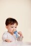 Tento praktický dudlík s unikátní ergonomickou "trojnožkou" umožňuje dítěti snadné držení jednou či oběma rukami a zároveň umožňuje hygienické odložení na stůl, aniž by se kousací část dotkla povrchu. Kousátko chrání víčko, které zároveň zabraňuje nečistotám, což oceníte zejména na cestách.