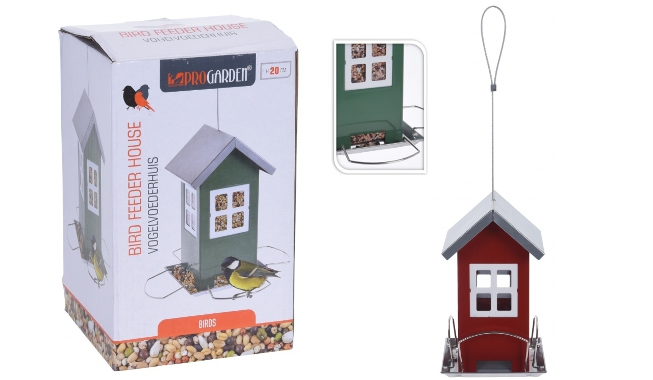 Kovové krmítko pro ptáky, červené