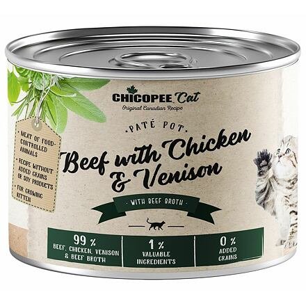 CHICOPEE KITTEN paté hovězí, kuřecí, zvěřina konzerva pro koťata 195 g - DOPRODEJ