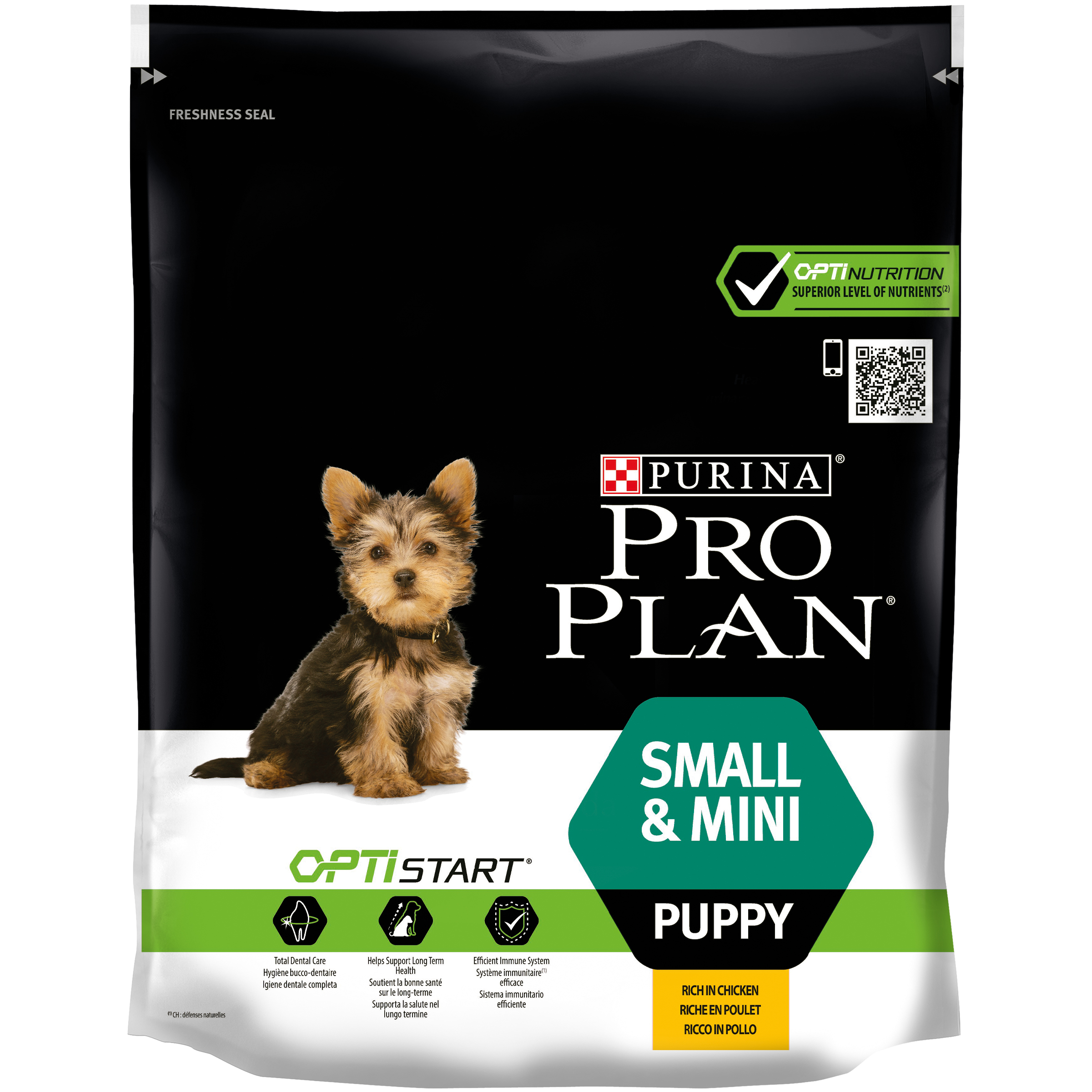 PURINA® Pro Plan® Small & Mini Puppy je kompletní krmivo pro štěňata malých a mini plemen se speciální kombinaci živin OPTISTART®, která zajišťuje, že dostanou ten správný základ pro zdravý vývoj a růst. OPTISTART® obsahuje mlezivo (první mateřské mléko, kolostrum), které napomáhá posilovat přirozenou obranyschopnost organismu štěňat malých a mini plemen. OPTISTART® posiluje imunitu štěňat při kontaktu s venkovním prostředím a pomáhá jim vybudovat zdravý imunitní systém pro celý život.