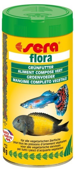 Rostlinné vločkové krmivo s vysokým obsahem spiruliny určené především býložravým rybám, jako jsou sumečci (např. Plecostomus), živorodky, cichlidy z jezer Malawi a Tanganika (např. Tropheus) a mřenky. Tyto druhy ryb by měly být střídavě krmeny krmivy Sera flora a Sera spirulina Tabs. Druhově správná výživa podporuje zdravé trávení a pokládá základ úspěšného chovu a odchovu. Obzvláště vysoký podíl řasy spirulina zajistí zvýraznění přírodního vybarvení.