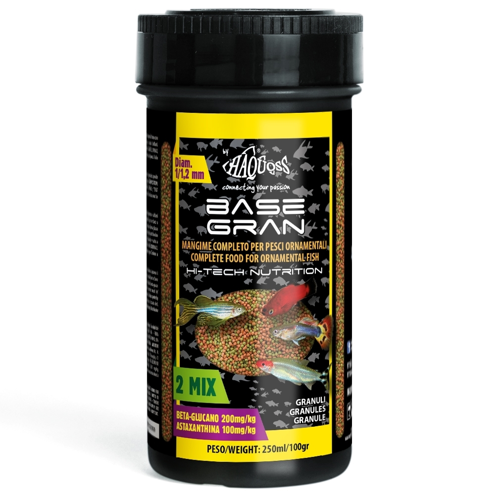 Kompletní granulované krmivo pro okrasné ryby. Vyrábí se zvláštním způsobem, aby byla zachována kvalita vlastností použitých složek (mastné kyseliny OMEGA, beta-glukan, betakarotén, ASTAXANTHINA, aminokyseliny, vitamíny, stopové prvky). Krmení pro náročné ryby, vhodné pro terčovce a cichlidy.