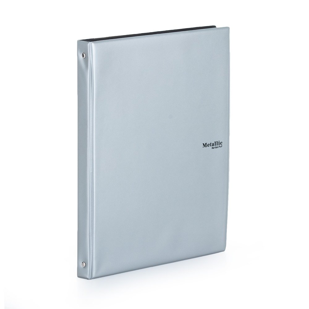 Blok v metalické barvě s kroužkovou mechanikou.
