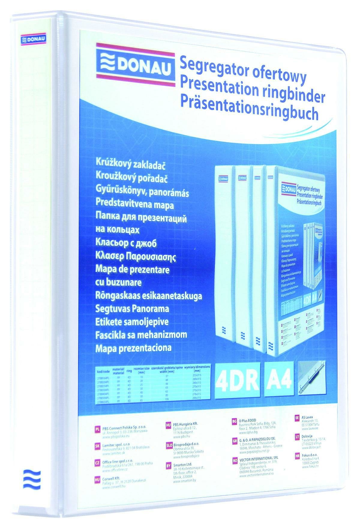 Kroužkový pořadač, s průhlednými kapsami, bílá, 4 D kroužky, 37 mm, A4, PP, DONAU