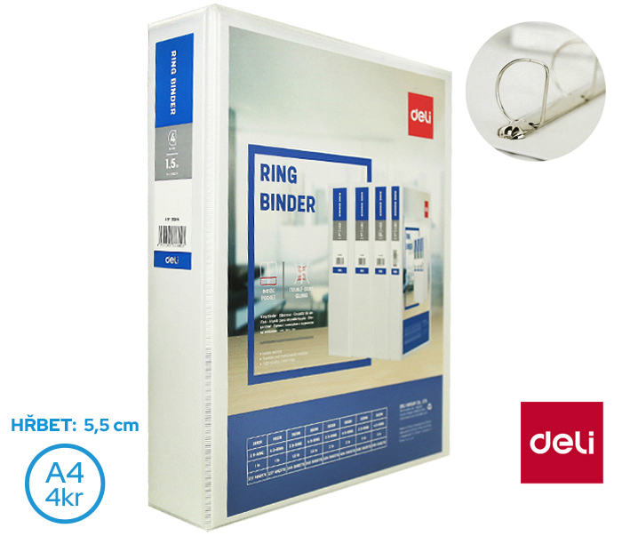 Pořadač A4/55mm 4 kroužkový \"D\" 25mm DELI E5615N