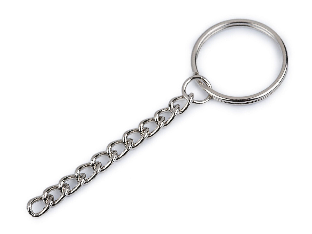 Kroužek na klíče Ø25 mm s řetízkem - 100 ks - 1 nikl