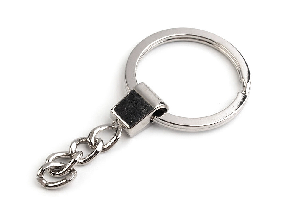 Kroužek na klíče Ø30 mm s řetízkem - 20 ks - 1 nikl