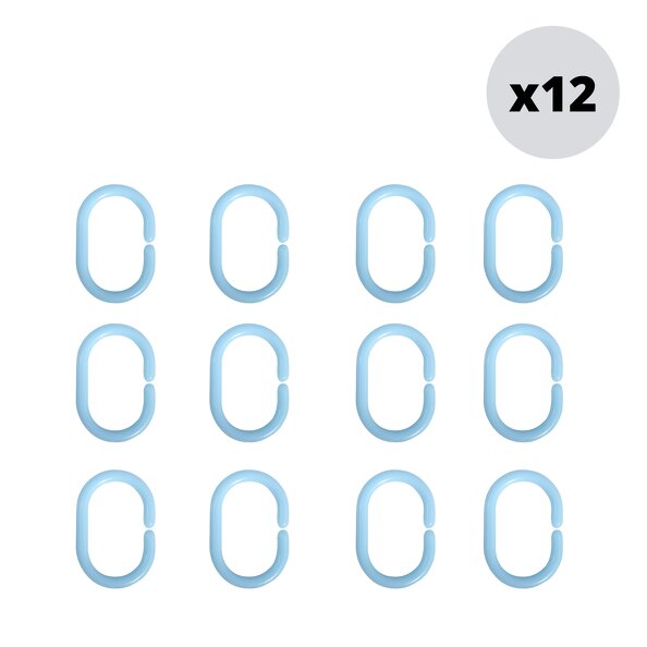 MSV sada 12 ks kroužků na sprchové závěsy, modrá, polypropylen, 5,8 x 3,8 cm