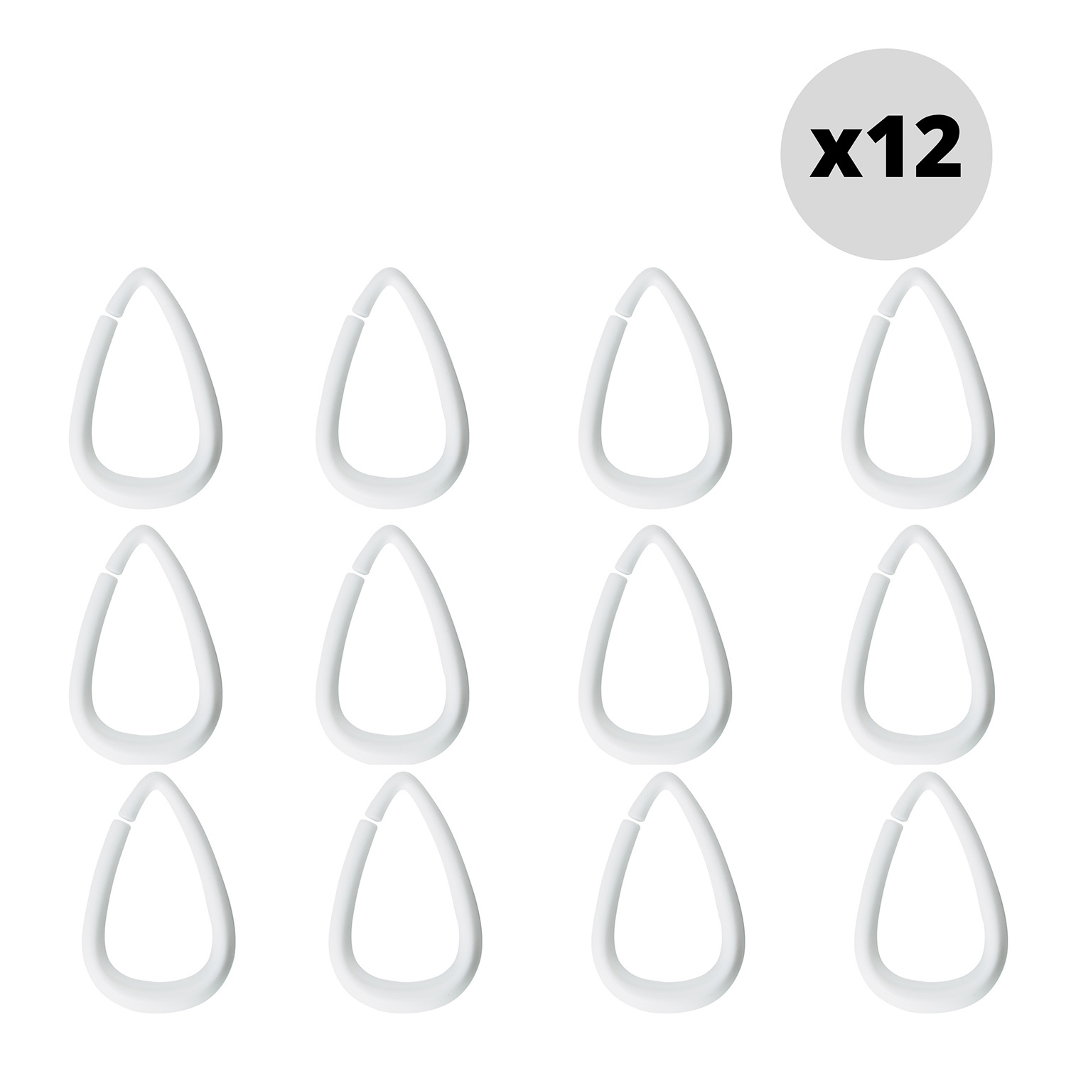 Spirella sada 12 ks kroužků na sprchové závěsy DROP, bílý, plast, průměr 5,5 x 3,5 cm