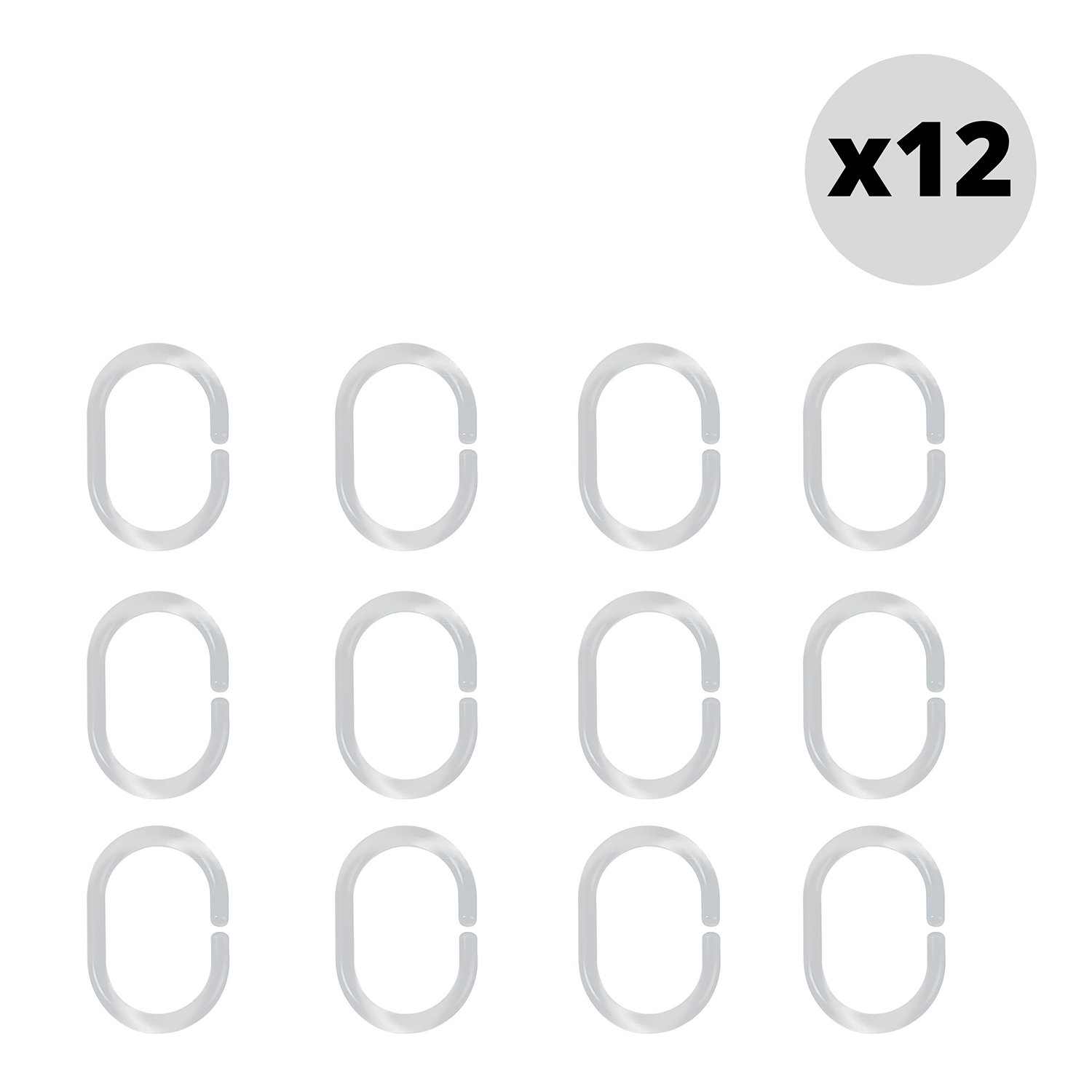 Spirella sada 12 ks kroužků na sprchové závěsy C-MINNOR, průhledná, SAN plast