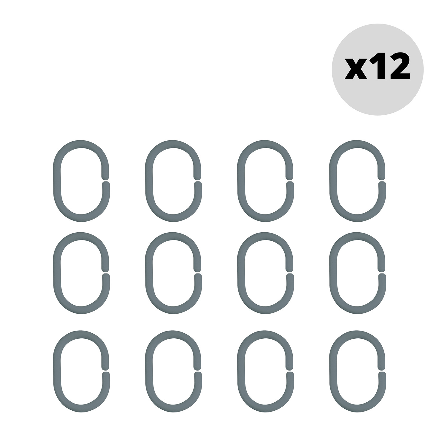 Spirella sada 12 ks kroužků na sprchové závěsy C-MINNOR, šedá, Polypropylen, 4 x 5,8 cm