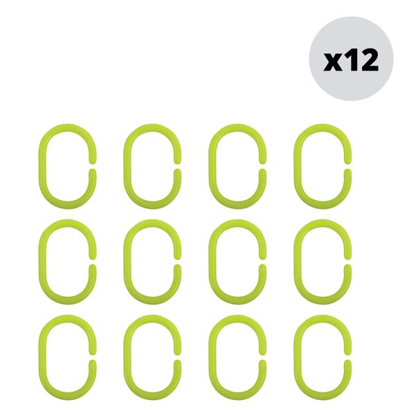 MSV sada 12 ks kroužků na sprchové závěsy, zelená, polypropylen, 5,8 x 3,8 cm