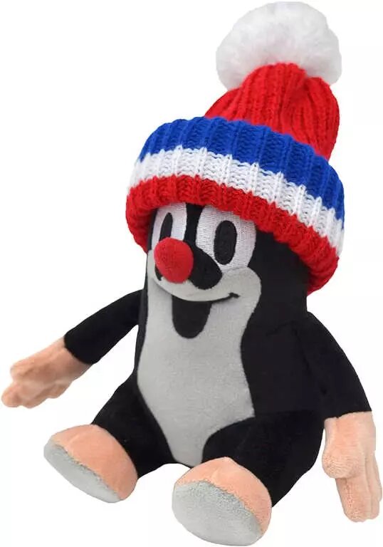 Sedící plyšový Krtek se sundávací čepicí (červená trikolora), který po zmáčknutí náhodně přehrává vybrané originální zvuky z pohádek o Krtečkovi číst celé