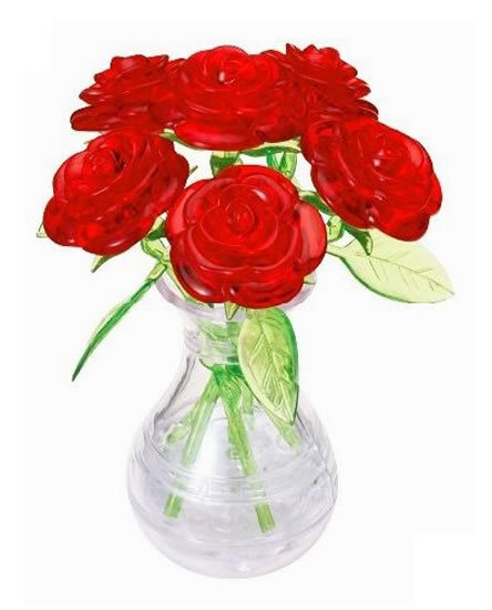 Krystalové puzzle 3D - Kytice růží - 47 dílků, HCM Kinzel. Trojrozměrné puzzle z barevného průhledného plastu z různě tvarovaných dílků.