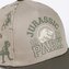 Hnědo-zelená dětská baseballová kšiltovka s grafikou dinosaurů a loga 1993 ze série Jurassic Park na přední straně. Nastavitelná velikost polohovacím řemínkem.