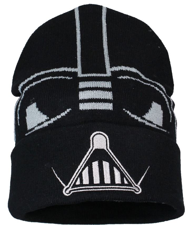 Černá úpletová zimní čepice. Čepice s grafikou DARTH VADER.