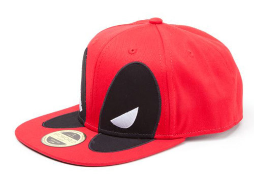 Oficiální čepice z katalogu produktů s grafikou populárního komiksového superhrdiny Deadpoola.