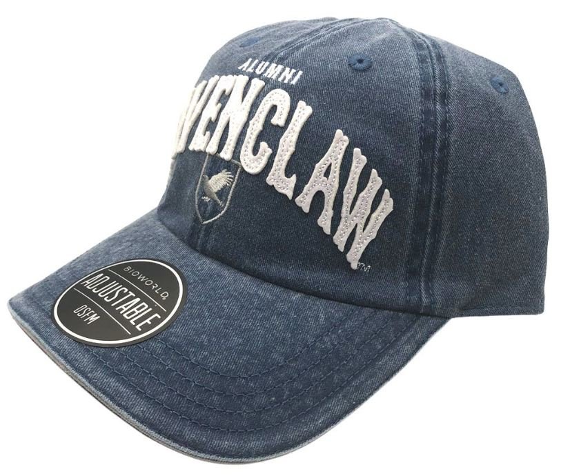Kšiltovka s nápisem Ravenclaw (Havraspár). Na zadní straně je kovová spona, která slouží k nastavení požadované velikosti.