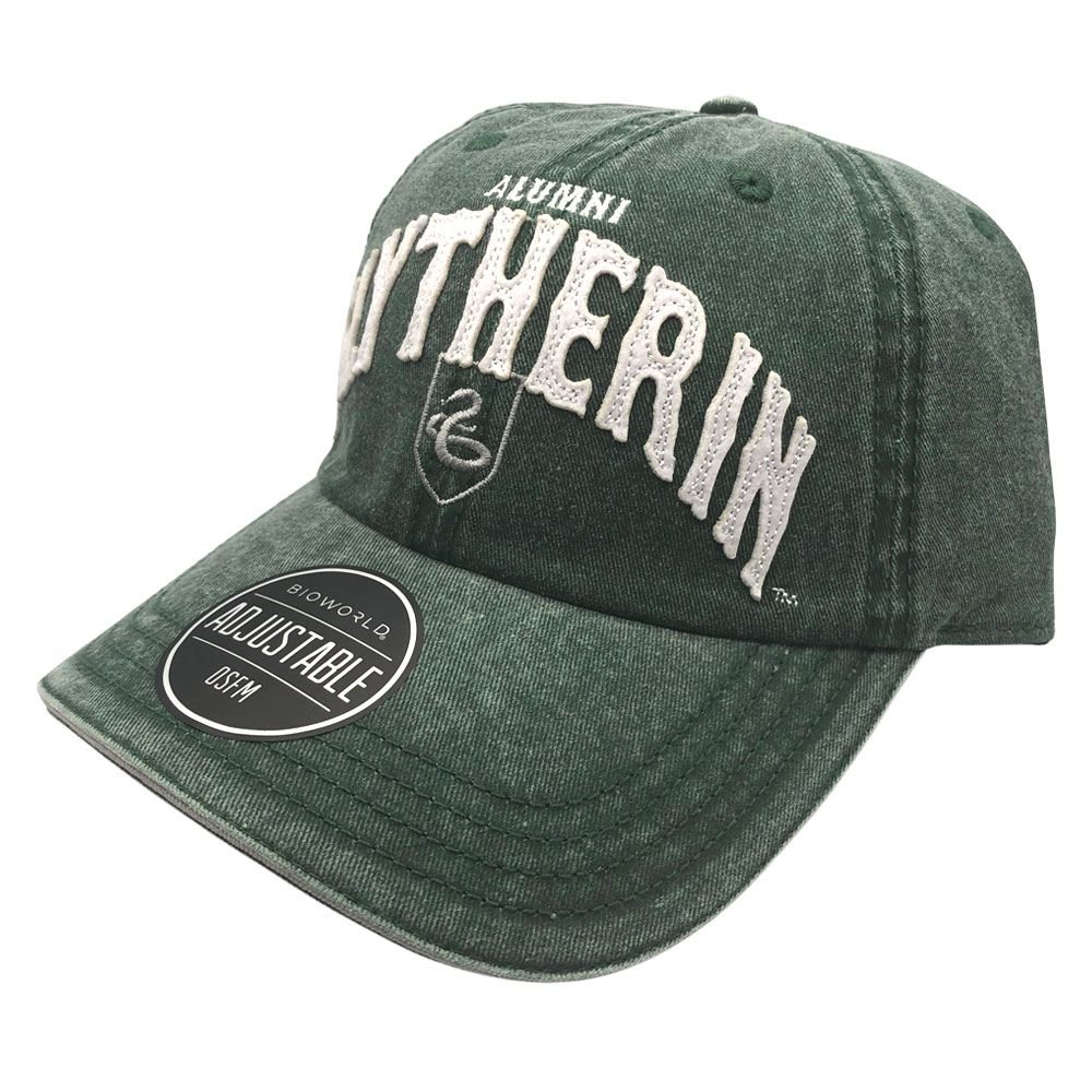 Zelená kšiltovka se znakem a logem koleje Slytherin (Zmijozel). Na zadní straně je kovová spona, která slouží k nastavení požadované velikosti.